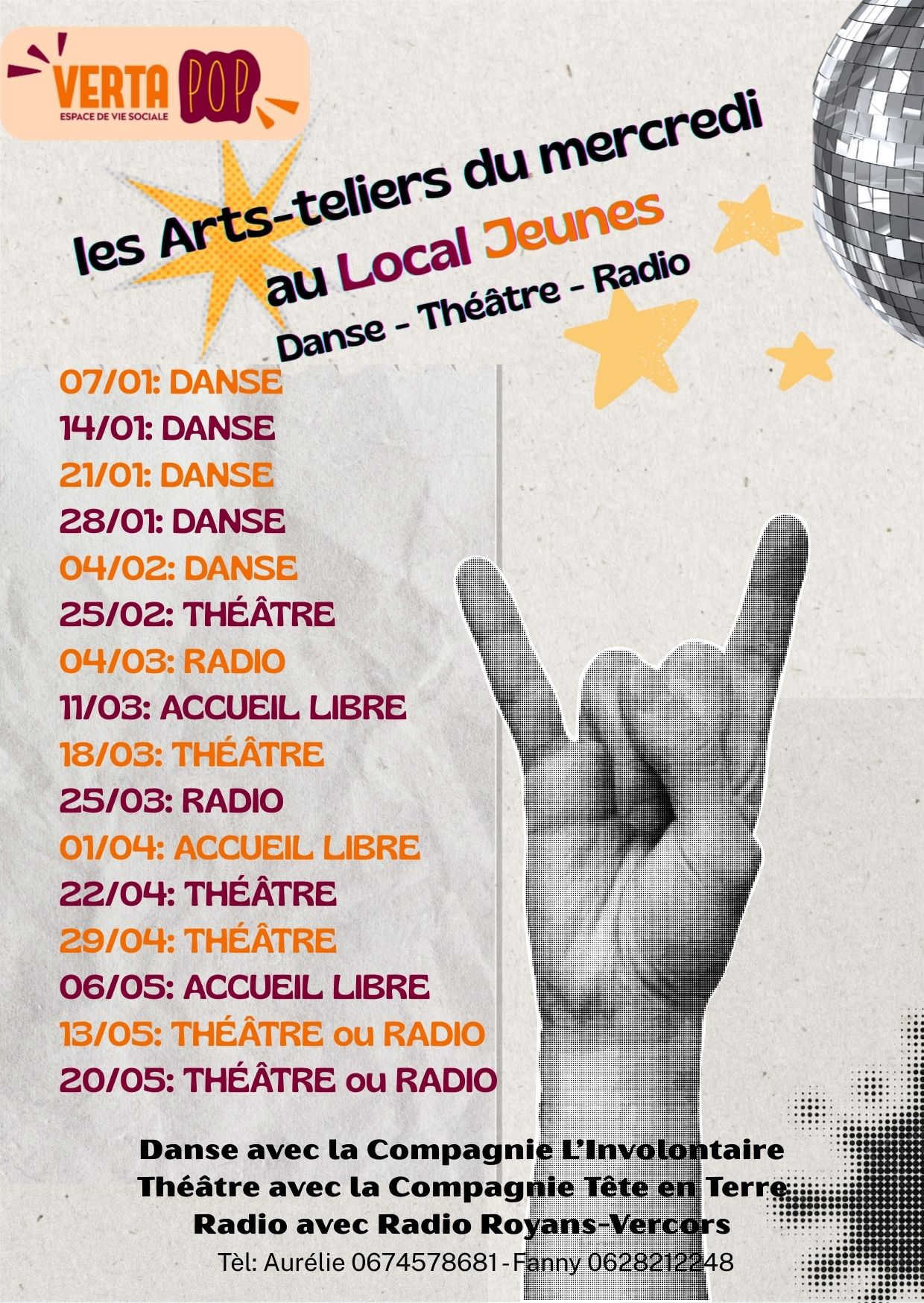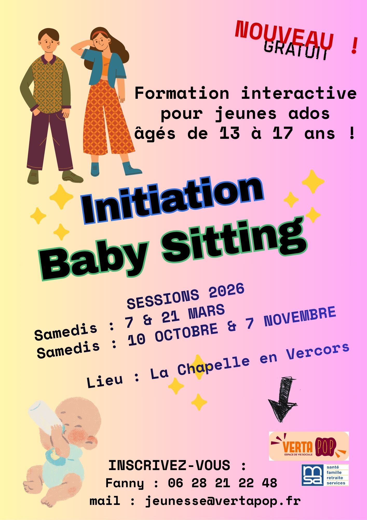 Inscription auprès de Kris 07 77 83 29 50 – vertapop.animation@maison-aventure.com